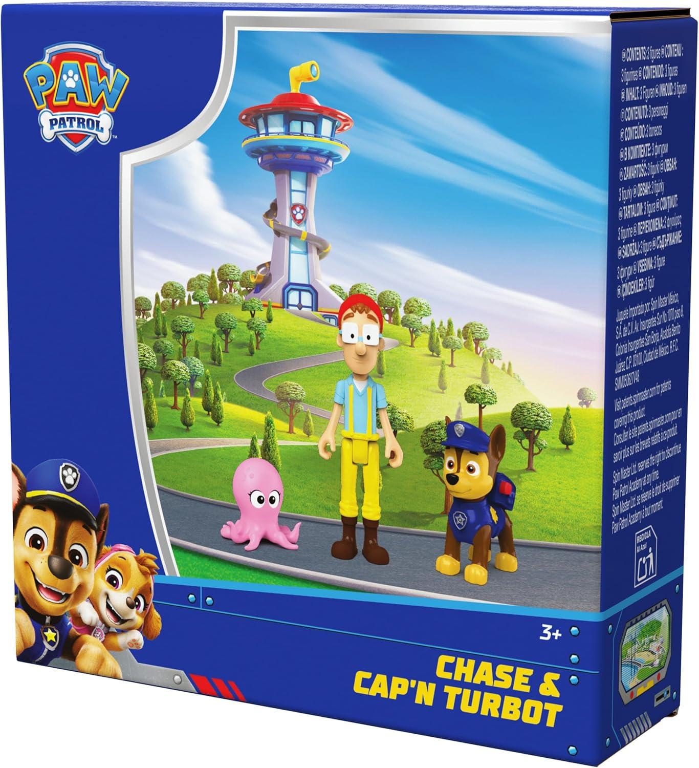 Join the PAW Patrol adventure with the Chase & Captain Turbot Figure Pack! This exciting set features a 2.5-inch Chase figure with a movable head and a 4-inch Captain Turbot figure with movable limbs, alongside a cute Baby Octopus figure. These figures are crafted with authentic PAW Patrol design and styling, bringing the beloved characters to life just like on the show. With four different story packs to collect, each offering unique characters, the excitement never ends. These PAW Patrol learning toys are PAWsome for a birthday, Christmas, or any holiday. For even more fun, combine with the Fire Rescue Command Center, Rapid Reload Fire Truck & six different Fire Rescue figures & vehicles, so the excitement never ends. (each sold separately) Relive cherished moments from past PAW Patrol seasons, like the Mighty Pups and PAW Patrol Movie, or create new adventures with a PAW Patrol tower, individual PAW Patrol action figures and their PAW Patrol vehicles, for turbo-charged adventures.