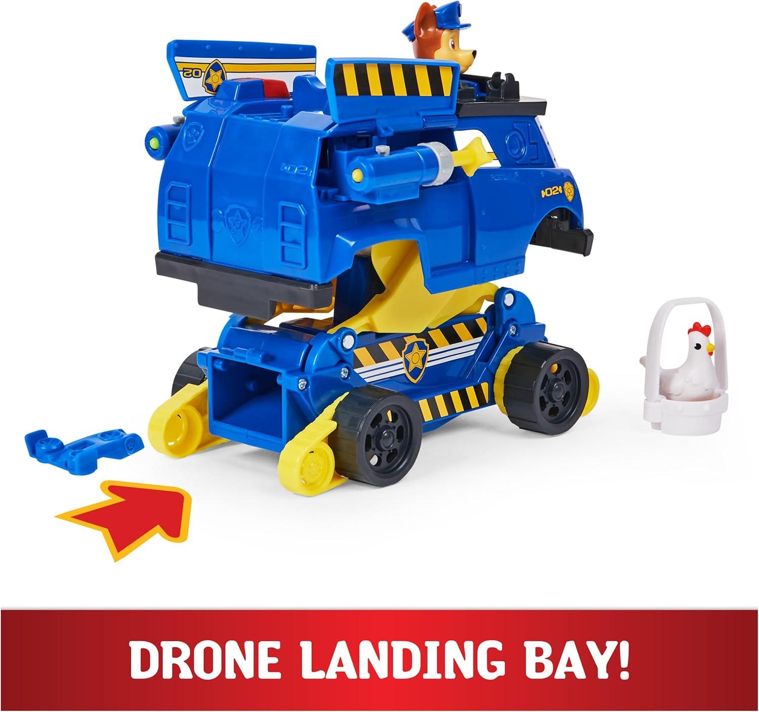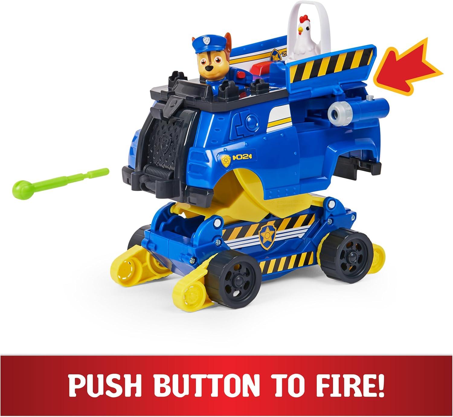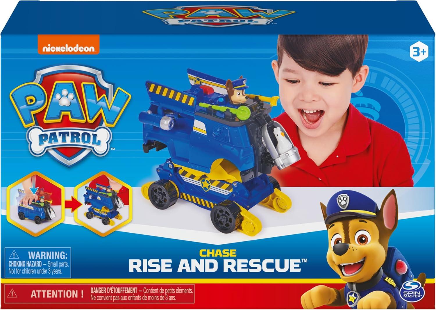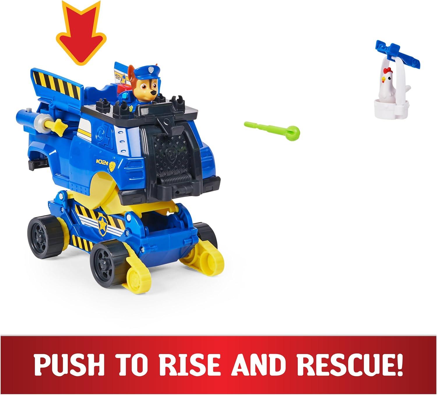 Rise to the rescue with PAW Patrol’s Chase and his Rise and Rescue Vehicle! Chase’s police car features authentic graphics and details, a storage area for accessories and an exciting rescue transformation. When it’s time for an exciting rescue, put your Chase action figure into the driver’s seat and speed off toward your mission. Once you arrive, push down on the vehicle to spring into rescue mode – the vehicle rises up, to reveal its projectile launchers and rescue drone, while also giving Chase the perfect vantage point for a thrilling rescue! Launch the tennis ball and rescue net projectiles to clear away obstacles. For rescue missions in hard-to-reach places, open the storage bay at the back of the vehicle and send in Chase’s rescue drone and the recovery basket to fly Chickaletta (figure included) to safety! When your adorable animal friend is rescued, hook the basket onto the front of the vehicle to give her a safe place to ride on their way back home. Bring your action-packed rescues to life, as you use your imagination to play out your missions. For even more rescue adventures, look for the Marshall Rise and Rescue Vehicle (sold separately). The Rise and Rescue Vehicles toys for 3 year old boys and girls are the perfect gifts for kids. Team up with your favorite PAW Patrol pup, Chase and save the day with his Rise and Rescue Vehicle!