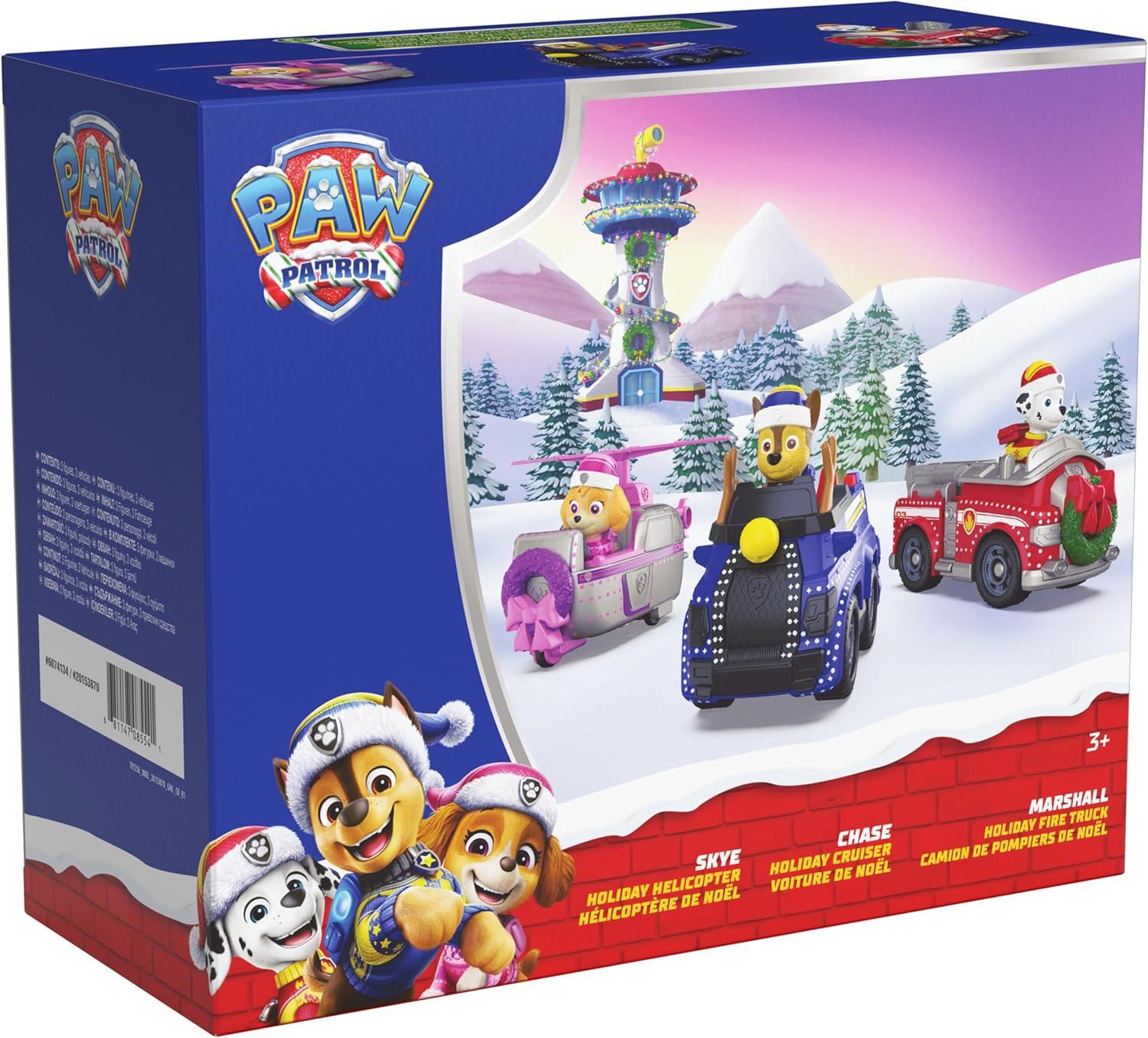 Paw Patrol Holiday Vehicle Bundle, Holiday-Themed Chase, Marshall & Skye Action Figures & Rescue Vehicles, Kids Toys for Boys & Girls Ages 3 & Up