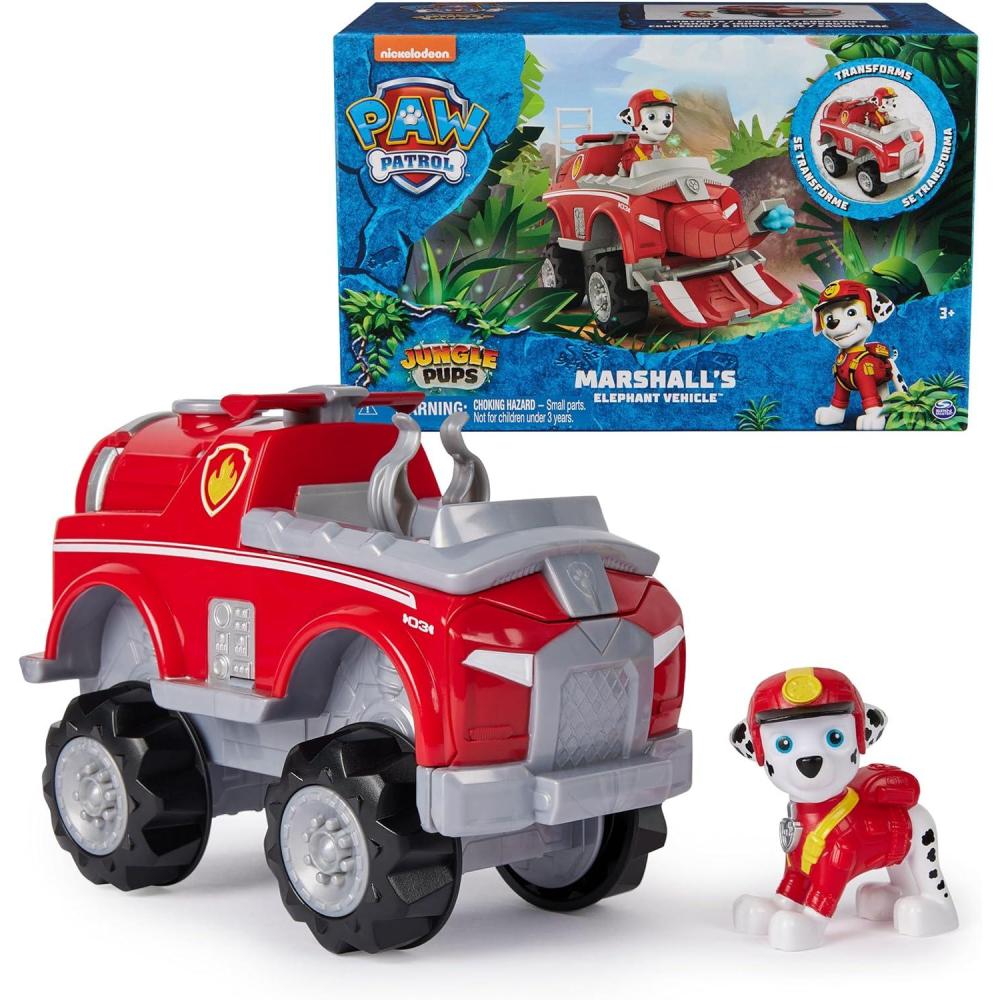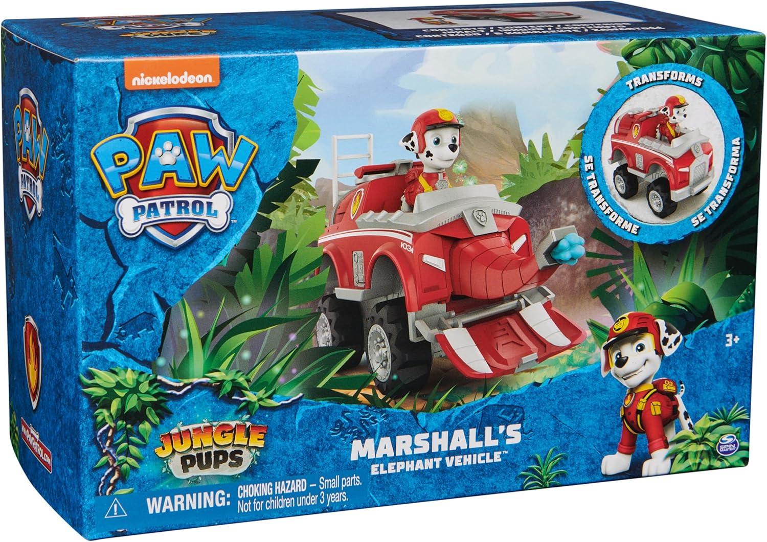 Get ready for exciting rescue adventures with Marshall, in his Elephant-themed Jungle Pups rescue vehicle! Marshall’s vehicle features an exciting transformation into rescue mode by pushing down the light bar on Marshall’s elephant vehicle, to reveal his vehicles elephant trunk and tusks, then using the trunk to clear away any obstacles and extending the rescue ladder to get to hard to reach places! For even more fun and exciting PAW Patrol series-inspired missions, collect all the PAW Patrol Jungle Pups toys and the PAW Patrol: The Mighty Movie toys, like the awesome Aircraft Carrier HQ and all the special edition PAW patrol toys for girls and boys, like the Mighty Pups, Aqua Pups and Big Truck Pups toy figures and playsets (each sold separately). With PAW Patrol preschool toys, a kid can explore his or her imagination, and develop their motor skills through pretend play, as they relive their favorite scenes from the shows. Enjoy endless PAWsome adventures with Marshall and his Jungle Pups Elephant Vehicle!