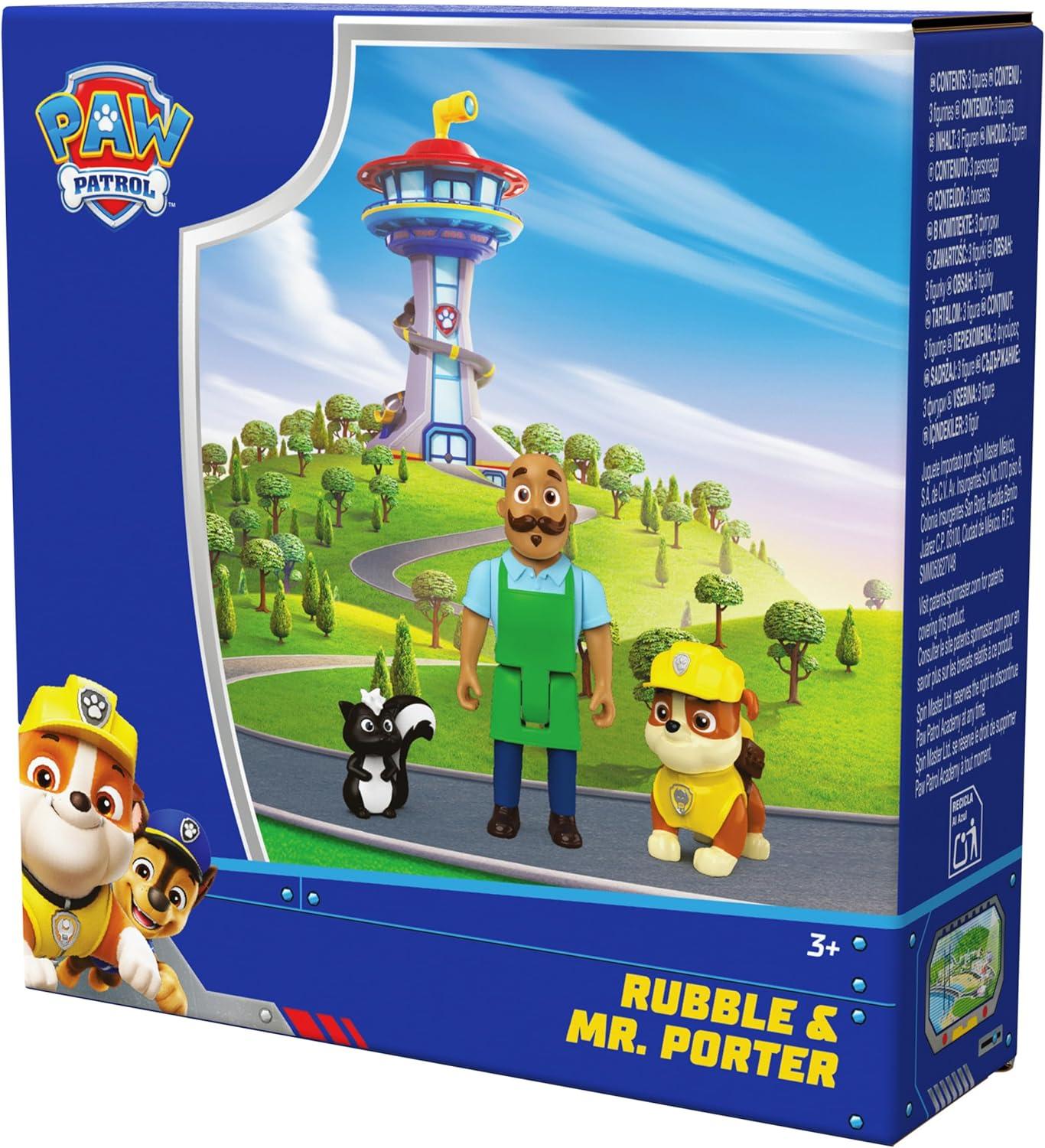 Join the PAW Patrol adventure with the Rubble & Mr. Porter figure pack. Featuring a 2-inch Rubble figure with a movable head, a 4-inch Mr. Porter figure with movable limbs, and a lovable skunk. Each figure is crafted with authentic PAW Patrol design and look just like they do in the show. PAWfect for birthdays, Christmas, holidays, or Easter, these figures offer endless opportunities for fun and learning. With four different story packs to collect, each offering unique characters, the excitement never ends. These PAW Patrol learning toys are PAWsome for a birthday, Christmas, or any holiday. For even more fun, combine with the Fire Rescue Command Center, Rapid Reload Fire Truck & six different Fire Rescue figures & vehicles, so the excitement never ends. (each sold separately) Relive cherished moments from past PAW Patrol seasons, like the Mighty Pups and PAW Patrol Movie, or create new adventures with a PAW Patrol tower, individual PAW Patrol action figures and their PAW Patrol vehicles, for turbo-charged adventures.