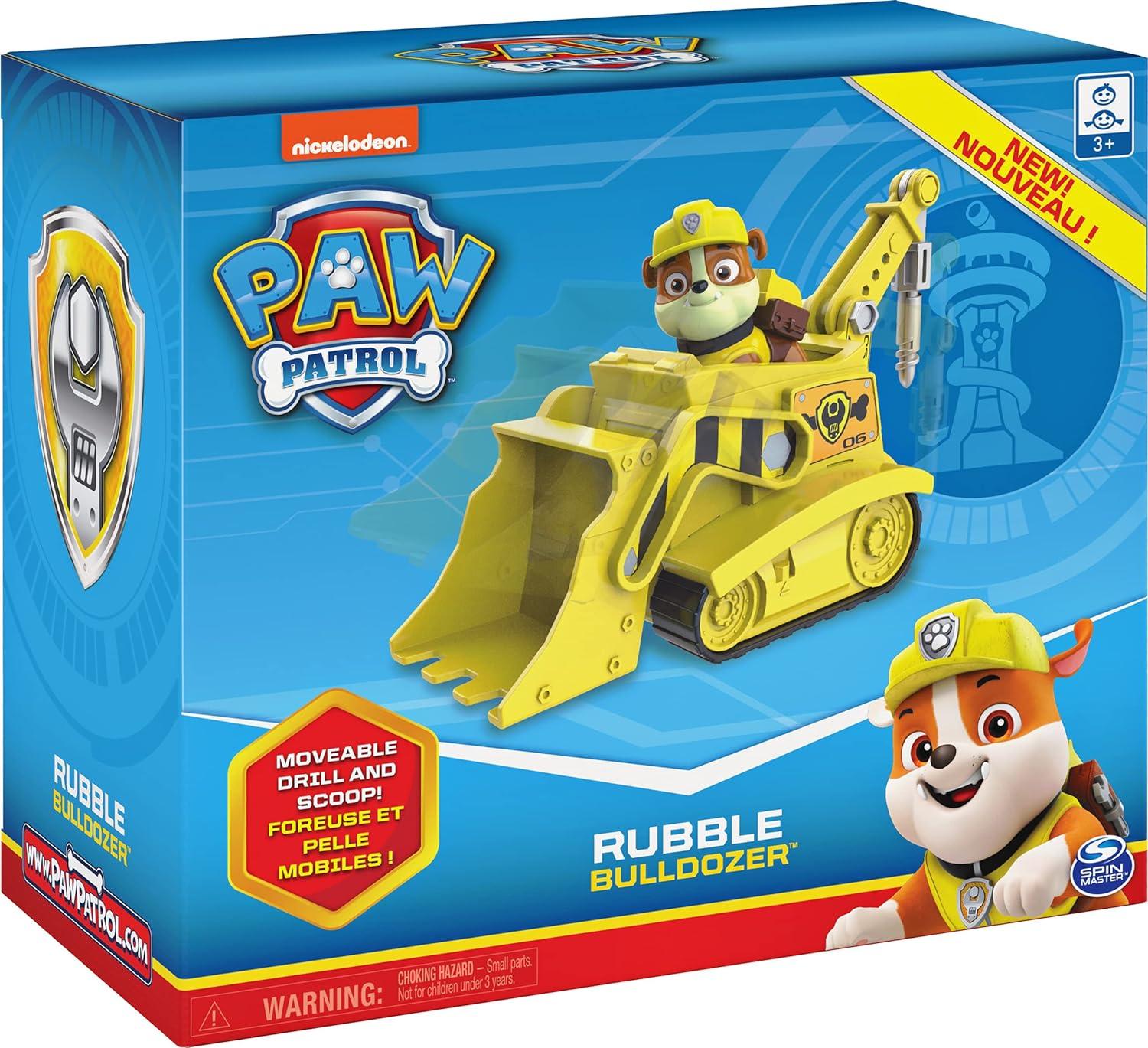 CONSTRUCTION BULLDOZER TOY CAR: Rubble is on the double in his Bulldozer! With authentic detailing, working tracks, and moveable drill and scoop, this construction vehicle is ready to take on exciting rescue missions!