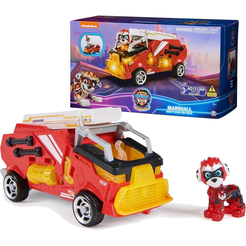 Paw Patrol: The Mighty Movie, Firetruck Toy with Marshall Mighty Pups Action Figure, Lights and Sounds, Kids Toys for Boys & Girls 3+(Red)