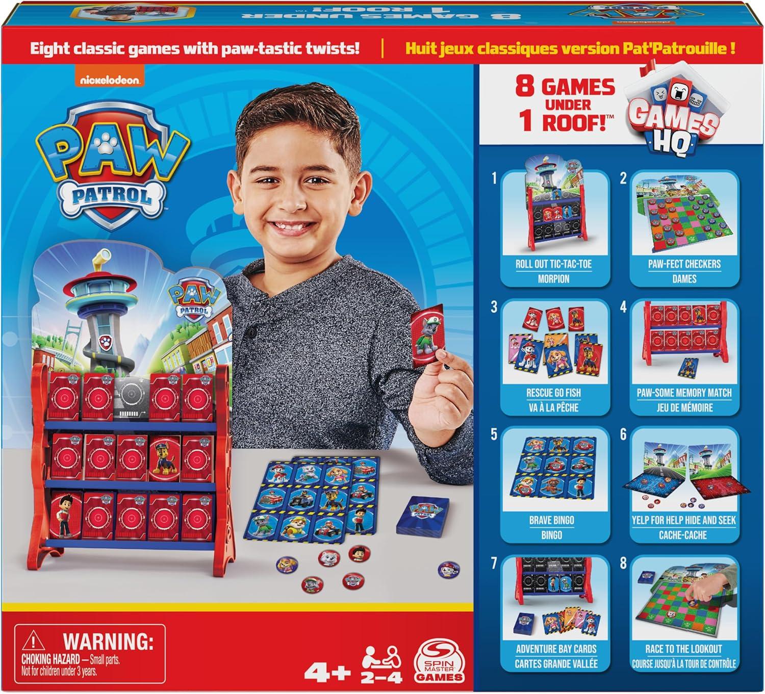 PAW Patrol: The Movie, 4-Game Adventure City Pack Memory Match, Pop-Up, Wooden Dominoes, & Lookout Games, PAW Patrol Toys for Kids Ages 4 and up(Paw Patrol 8 Games in 1 - Older Version)