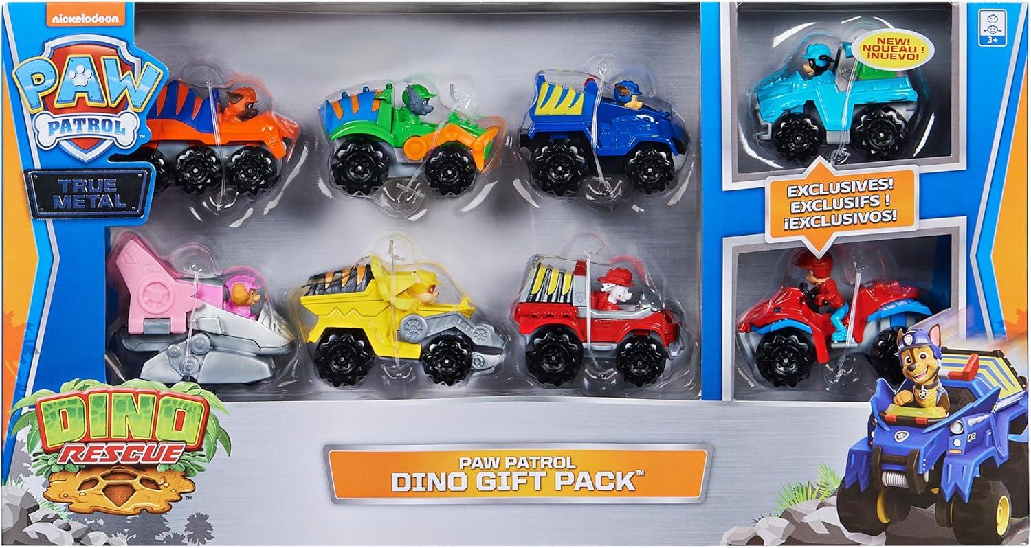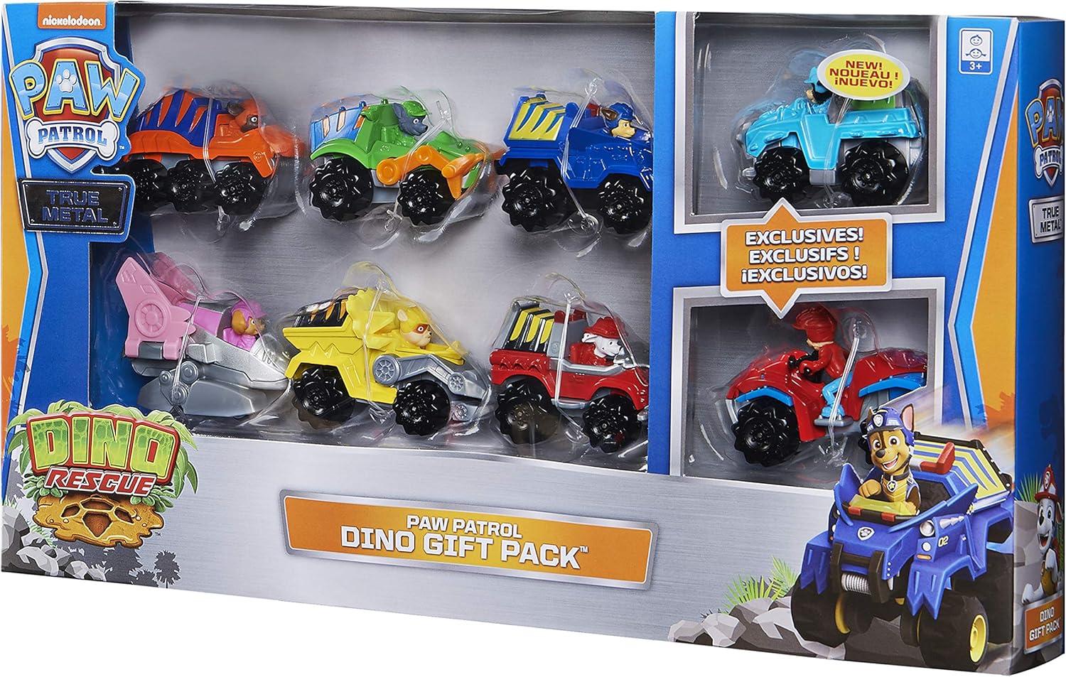 Paw Patrol, True Metal Movie Gift Pack of 6 Collectible Preschool Toys, 1:55 Scale Die-Cast Toy Cars, Kids Toys for Boys & Girls Ages 3 and up(8pk Dino Rescue Gift Pack)