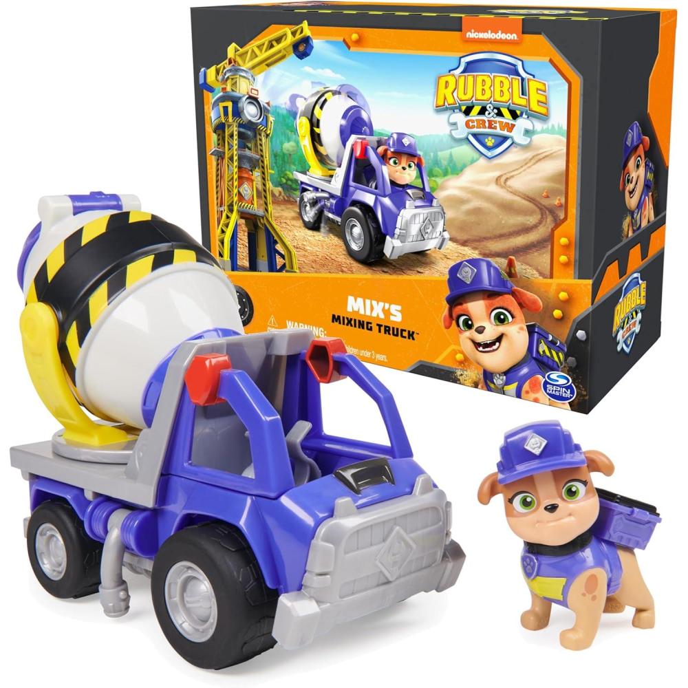 Rubble & Crew, Rubble’s Bulldozer Toy Truck with Movable Parts and a Collectible Action Figure, Kids Toys for Ages 3 and Up(Mix's Cement Truck)