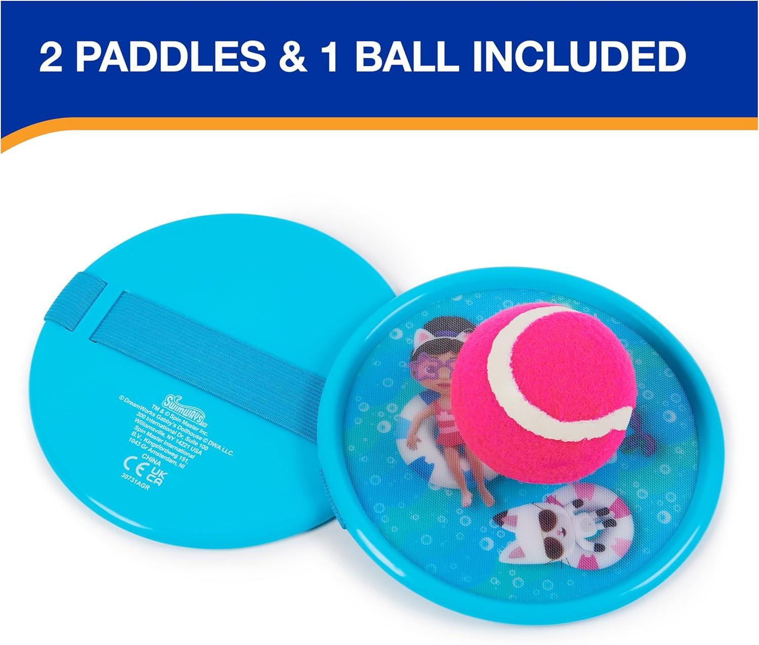 Join the pups for a classic game of catch with the Swimways Paw Patrol Catch Game, featuring your favorite pups from Paw Patrol! This backyard games are pool, yard and beach essentials for outdoor summer fun! The sticky Velcro material allows for an easy catch. To throw, simply de-tach the ball and throw to your friend! For extra fun pool games, take the Swimways Catch Game into the swimming pool and play the same way to stay cool when playing catch with friends! The paddle measures 6″ and is easy to carry for fun outdoor games on the go! Play on dry land, in the water, or at the beach to maximize summer fun! Paw Patrol toys for boys and girls are the perfect birthday gift, kids toys and Paw Patrol party supplies for themed pool parties. These toddler toys are a swimming pool and beach essential! Set includes 2 paddles and 1 ball. Recommended for children aged 4 and up.